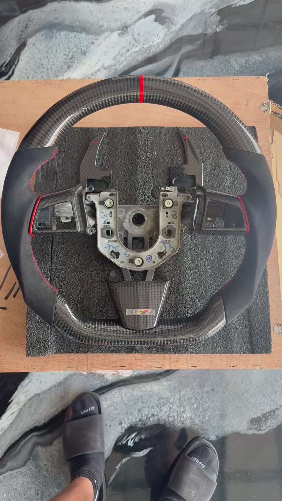 These custom handmade Carbon Fiber steering wheels start off as an OEM stock stripped down steering wheel, which ensures you that it will be as perfect of a fit as possible every time.