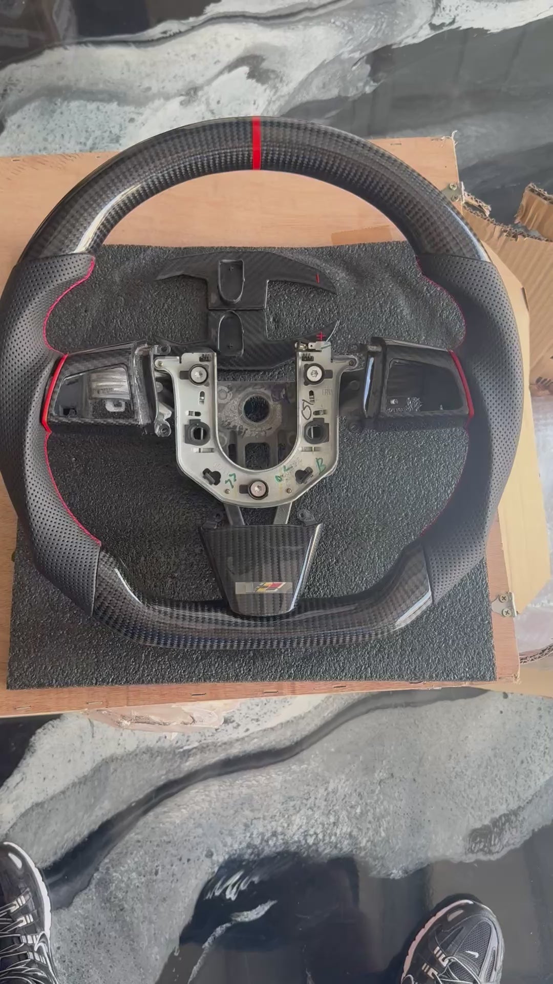 These custom handmade Carbon Fiber steering wheels start off as an OEM stock stripped down steering wheel, which ensures you that it will be as perfect of a fit as possible every time.