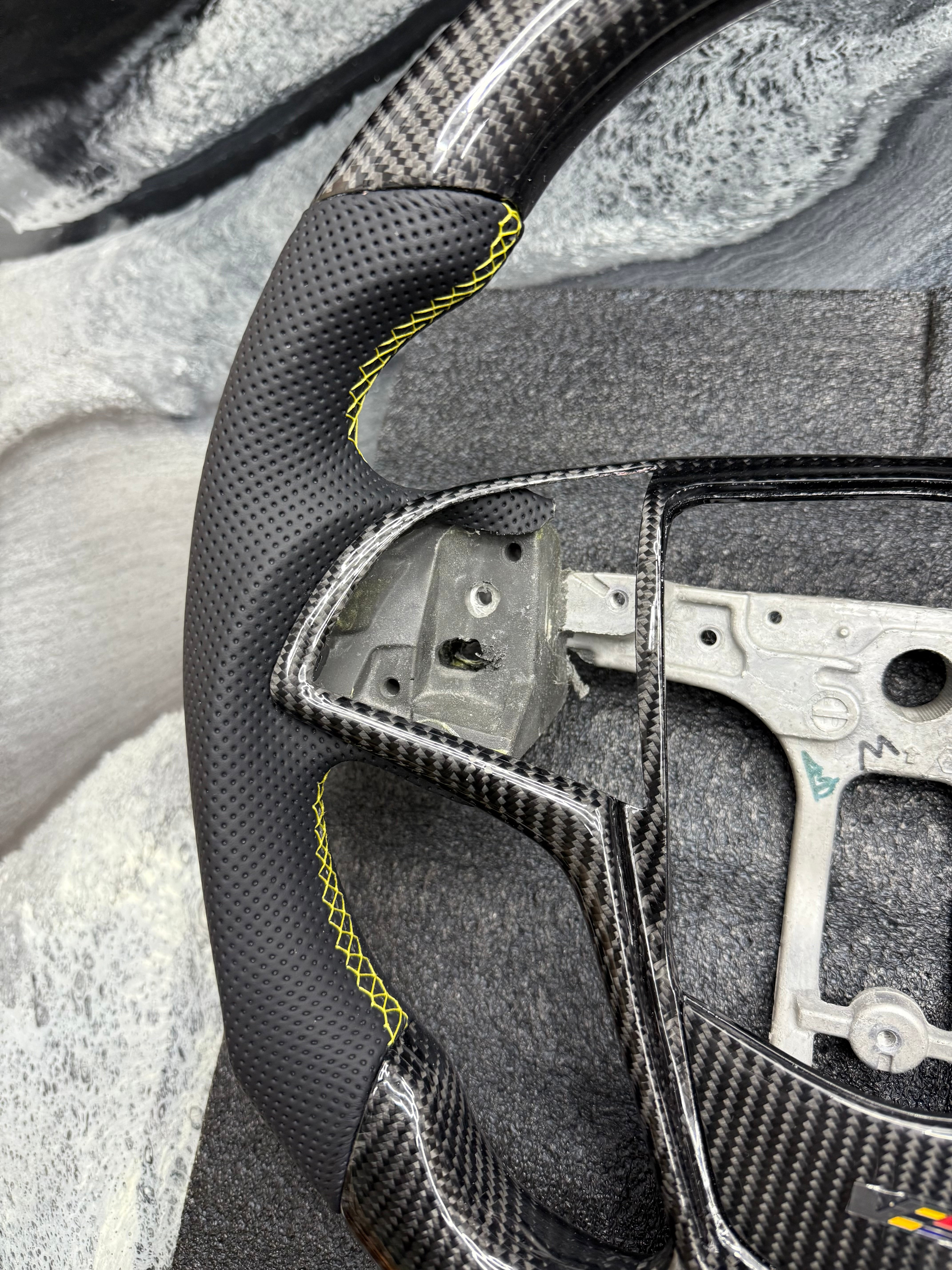 These custom handmade Carbon Fiber steering wheels start off as an OEM stock stripped down steering wheel, which ensures you that it will be as perfect of a fit as possible every time.