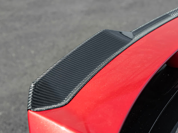 Constructed with premium Carbon Fiber material, this spoiler is not only lightweight but also incredibly durable, ensuring long-lasting durability and resistance to wear and tear. The use of Carbon Fiber not only adds a sleek and sporty element but also optimizes airflow for improved aerodynamics. The sleek Carbon Fiber finish adds a touch of sophistication and aggressiveness that complements the overall design of the Ford Mustang, elevating its visual appeal.