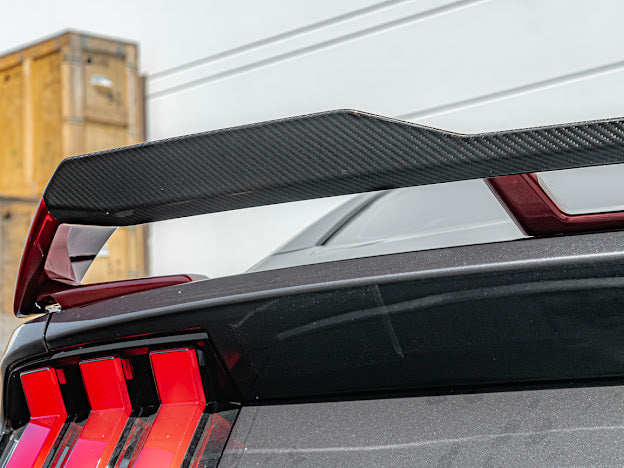 Upgrade the aerodynamic functionality and aesthetic appeal of your 2024-Present Ford Mustang with the GT Performance Package Rear Spoiler by utilizing our Carbon Fiber GT Performance Wing Rear Gurney Flap Spoiler. This top-of-the-line spoiler is expertly designed to enhance both the look and performance of your car, setting it apart on the road or track.