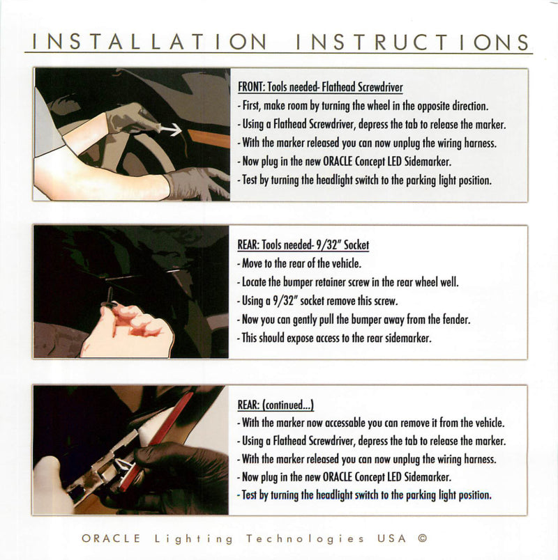 Concept SMD Sidemarker lights are complete side marker replacements fitted with high powered 3528 Bridgelux LEDs that produce a laser-like appearance. These are available with Clear or Tinted lenses and painted to match any of the factory paint codes. ORACLE Lighting is proud to offer the brightest side markers on the market to our customers. Do not be fooled by "too good to be true prices" ORACLE Lighting originated LED side markers, imitators don't measure up to our quality.